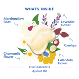 Apricot oil, marshmallow root*, rosehips*, lavender flower*, chamomile flower*, calendula flower*