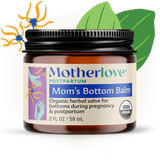 Mama tip: Mom's Bottom Balm can be combined with a padsicle, made by spritzing a maxi pad with Motherlove's Sitz Bath Spray and putting it in the fridge or freezer, for care back there.
