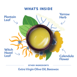 Extra virgin olive oil*, beeswax*, witch hazel leaf*, plantain leaf*, yarrow herb*, calendula flower*